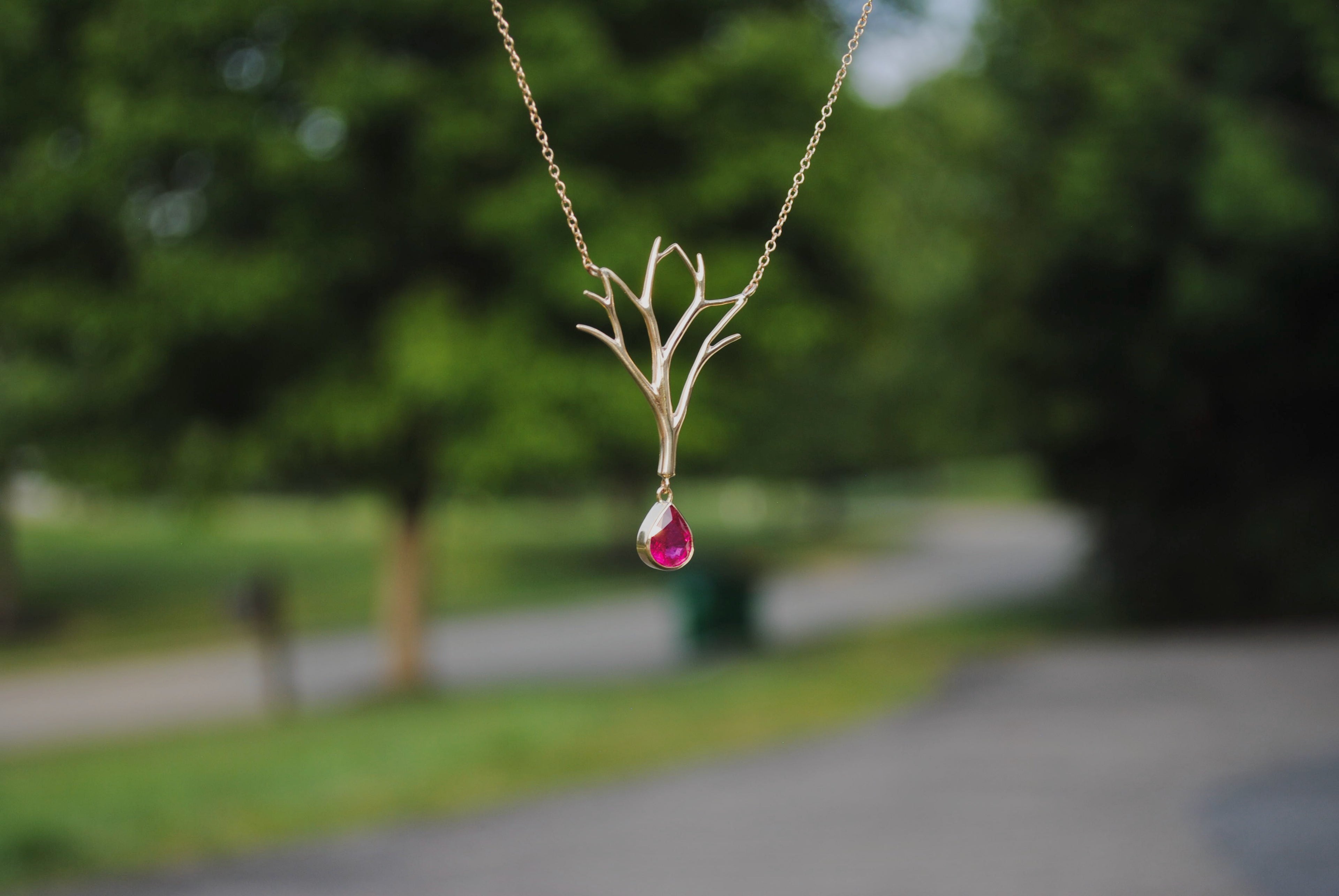 Gold Ruby Tree Pendant
